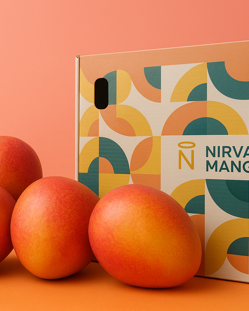 The Sensation mango is a late-season mango cultivar known for its distinctive dark plum-red skin and mildly sweet, fiberless, light yellow flesh. It originated in South Florida and is characterized by its oval shape, sometimes with a small beak, and pale yellow lenticel dots on the skin.
